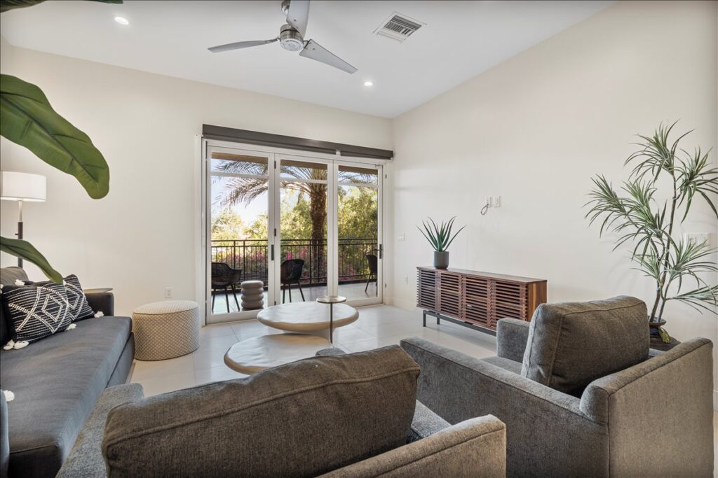 This 1,065 sq ft residence includes 1 bedroom and 1.5 baths, and is positioned for maximum privacy with no neighbors beside or below. The highlight is the private garden-view patio, framed by swaying palms — an elegant setting for morning coffee, a quiet afternoon, or evening wine.